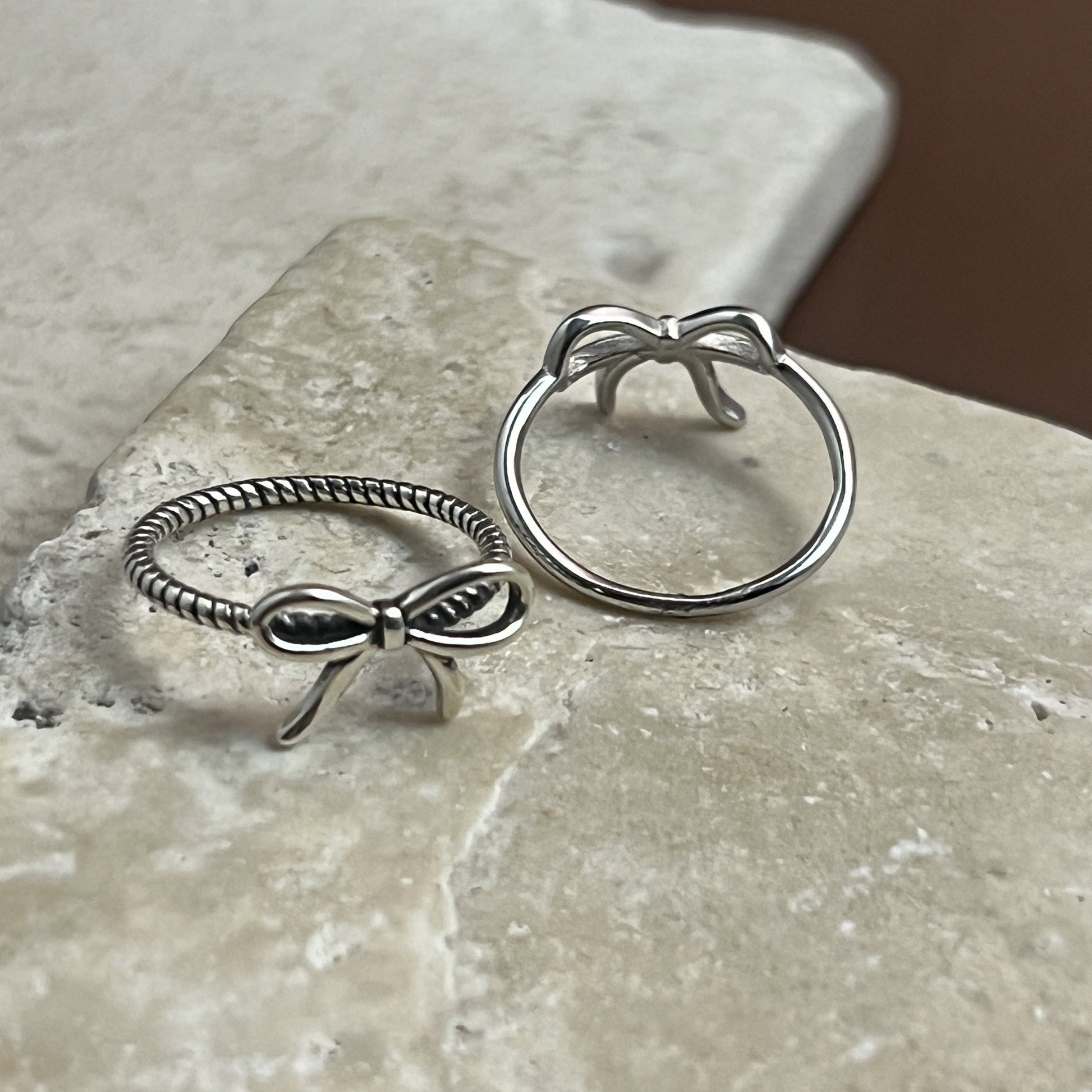 Sweetly sophisticated, this dainty bow ring is crafted in high-quality sterling silver and designed to add a touch of charm to any look. With its elegant looped bow and polished finish, it’s perfect for everyday wear or special occasions. Whether you choose the twisted band for a vintage flair or the sleek band for minimalist style, this ring is ideal for stacking or making a delicate solo statement.