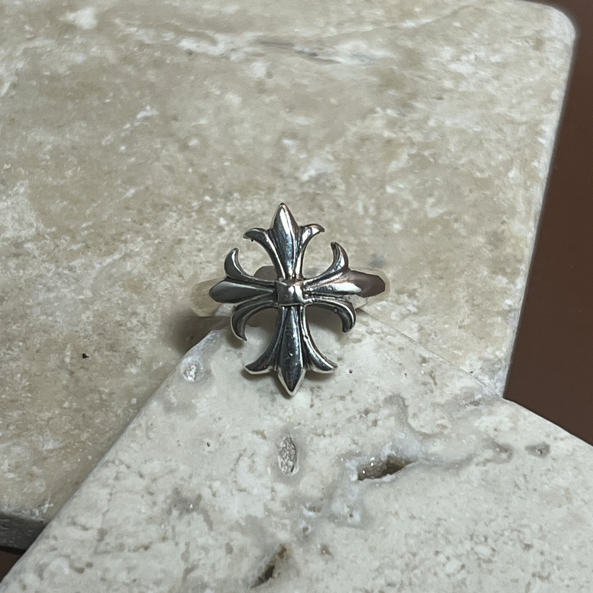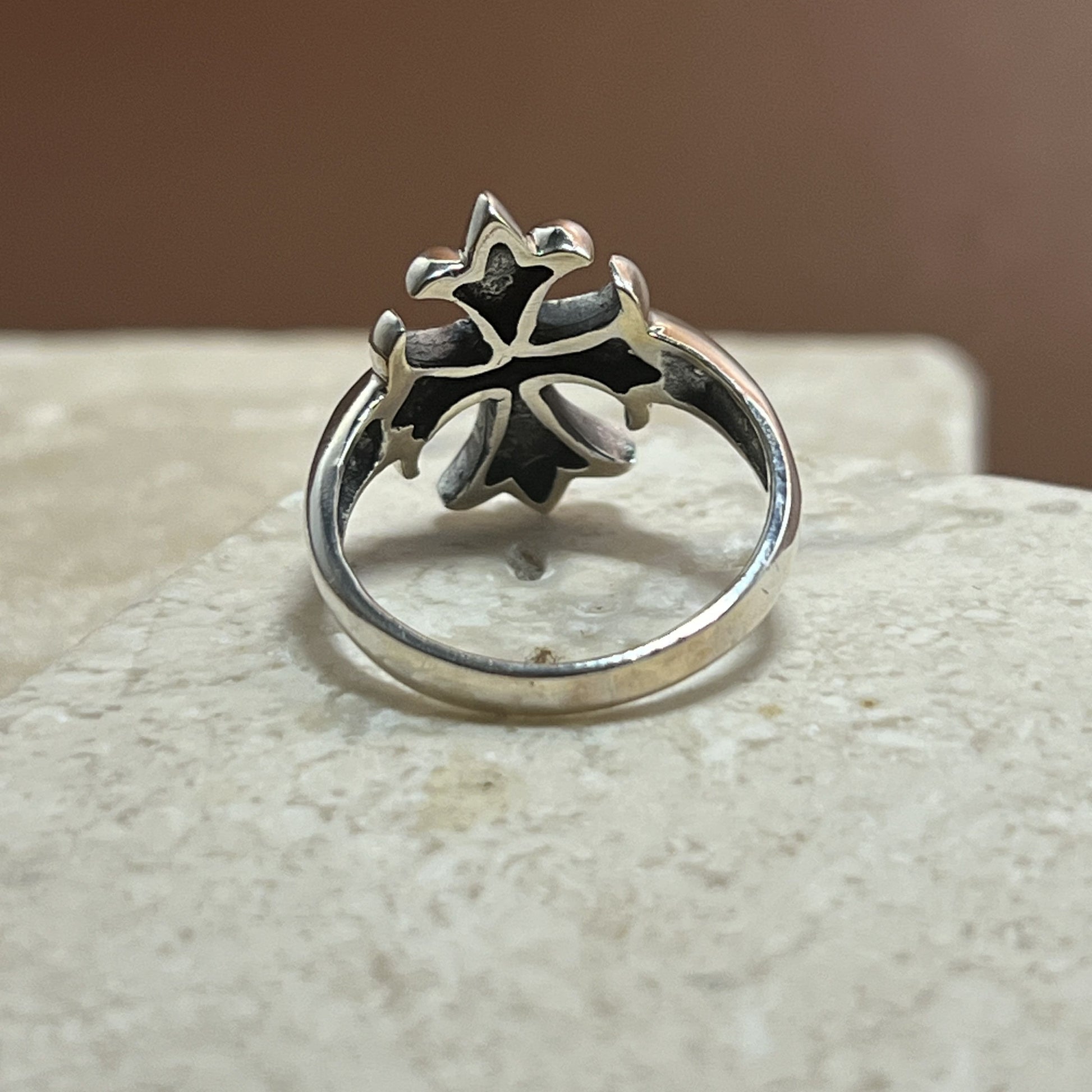 Featuring a prominent, raised cross set against a fine band, this ring draws from gothic and medieval influences to create a look that’s unapologetically strong. With a heavyset design, it’s made for those who carry conviction in every step.